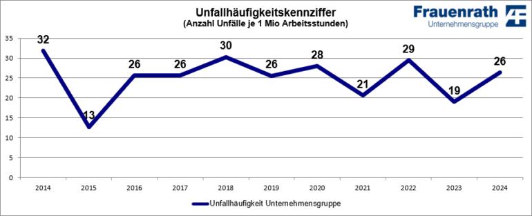 Diese Zielsetzung haben wir seit 2014 in unserer Unternehmensgruppe erreicht, so haben wir für das Jahr 2024 eine Unfallhäufigkeitskennziffer von insgesamt 26 für unsere Standorte in Heinsberg und Großröhrsdorf ermittelt.